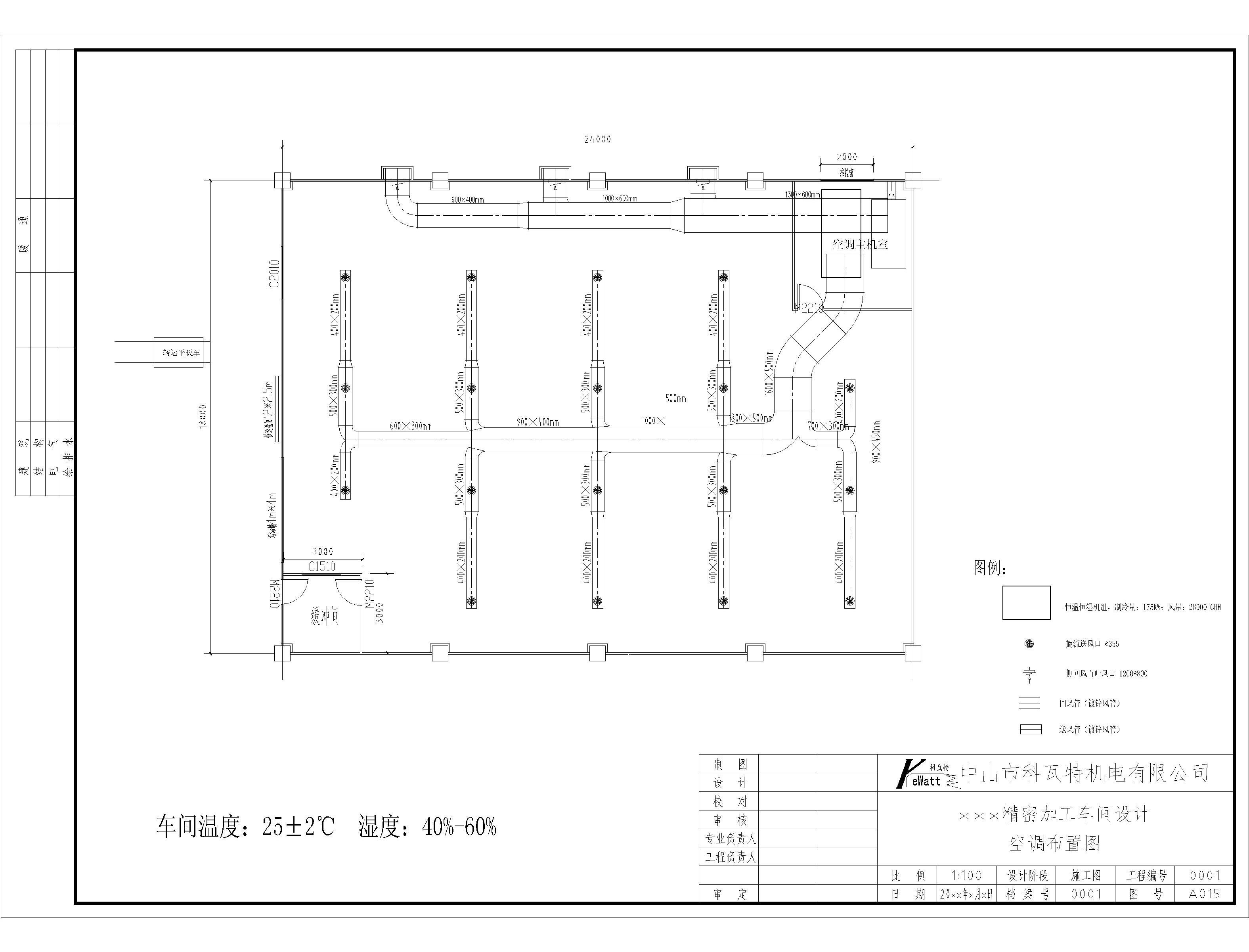 重點說明:本設計與施工案例是中山市科瓦特機電有限公司給國內某知名機械裝備制造業(yè)、精密加工企業(yè)的恒溫恒濕工程項目。